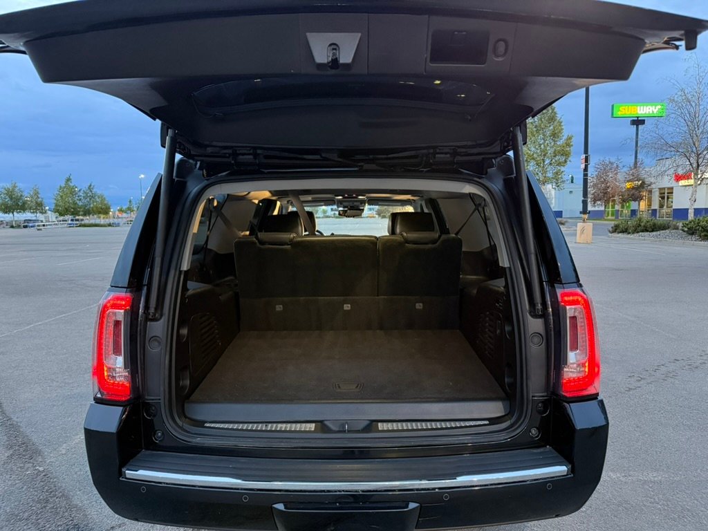 This Luxury GMC Yukon Denali XL model is one of the most luxurious SUVs made by GM. This beauty is in Like New Condition, with leather seats and three rows of 8 Seats. This All-Wheel-Drive SUV is a perfect Luxury SUV for your Alaskan Vacation. SPACIOUS TRUNK space for your luggage or Alaskan Fish Boxes. We also offer a Hitch-Mounted Luggage Rack if you need more space.